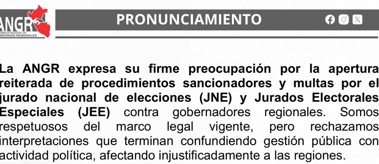 🚨 La ANGR expresa su firme preocupacion por la apertura reiterada de procedimientos sancionadores y multas por JNE y JEE